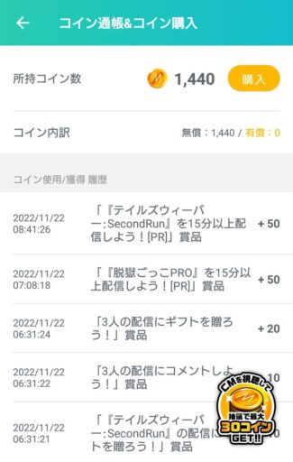 ライブゲームをプレイしてコインを獲得しよう